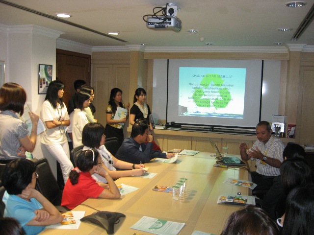 Guided by the Municipal Council of Penang Island (MPPP), a presentation and talk on recycling were delivered to our employees in conjunction with the campaign. The talk was aimed to promote the importance of recycling and its effects towards the environment. Our intention was to inculcate the habit of 'think before you act', be it at workplace or at home to avoid unnecessary usage of paper and plastics, reducing the usage of water and electricity.